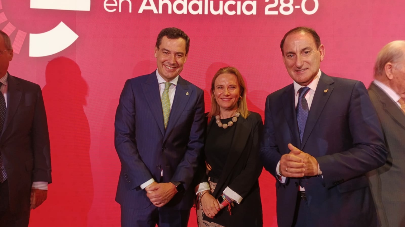 👉🏼 La presencia de nuestra Presidenta, María González, junto al Presidente de la Junta de Andalucía , Juanma Moreno y el presidente de la Confederación de Empresarios de Andalucía – CEA ), Javier González de Lara, evidencia el papel clave de los idiomas en el progreso de Andalucía.