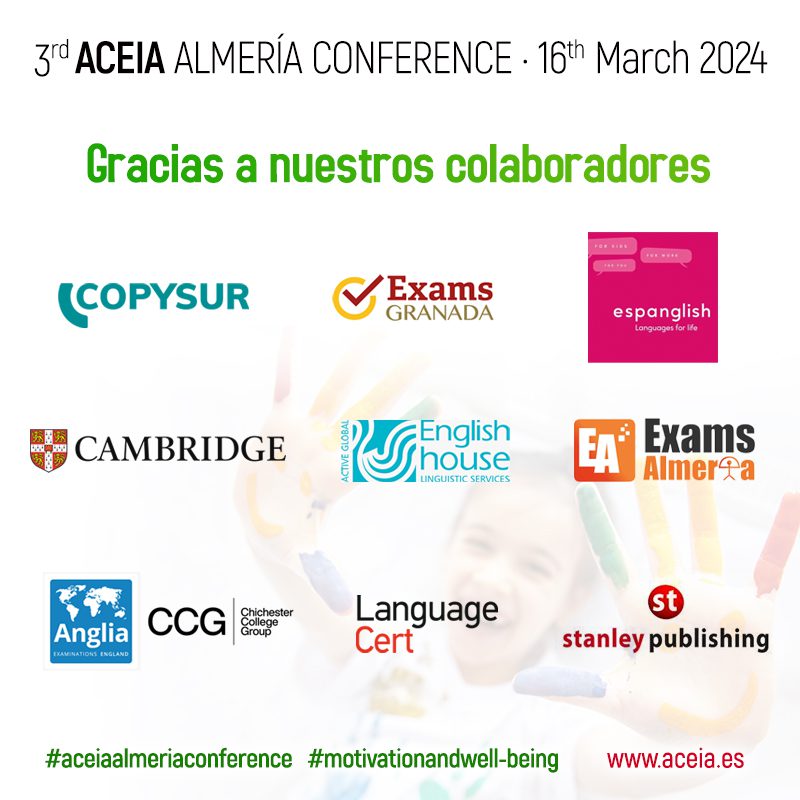 El encuentro ha podido celebrarse gracias a un total de nueve patrocinadores y colaboradores: Language Cert, Cambridge Assessment English, Richmond, Anglia, Stanley Publishing, Exams Granada, Exams Almería, English House, Espanglish y Copysur han prestado su apoyo para hacer realidad esta Conferencia Anual.