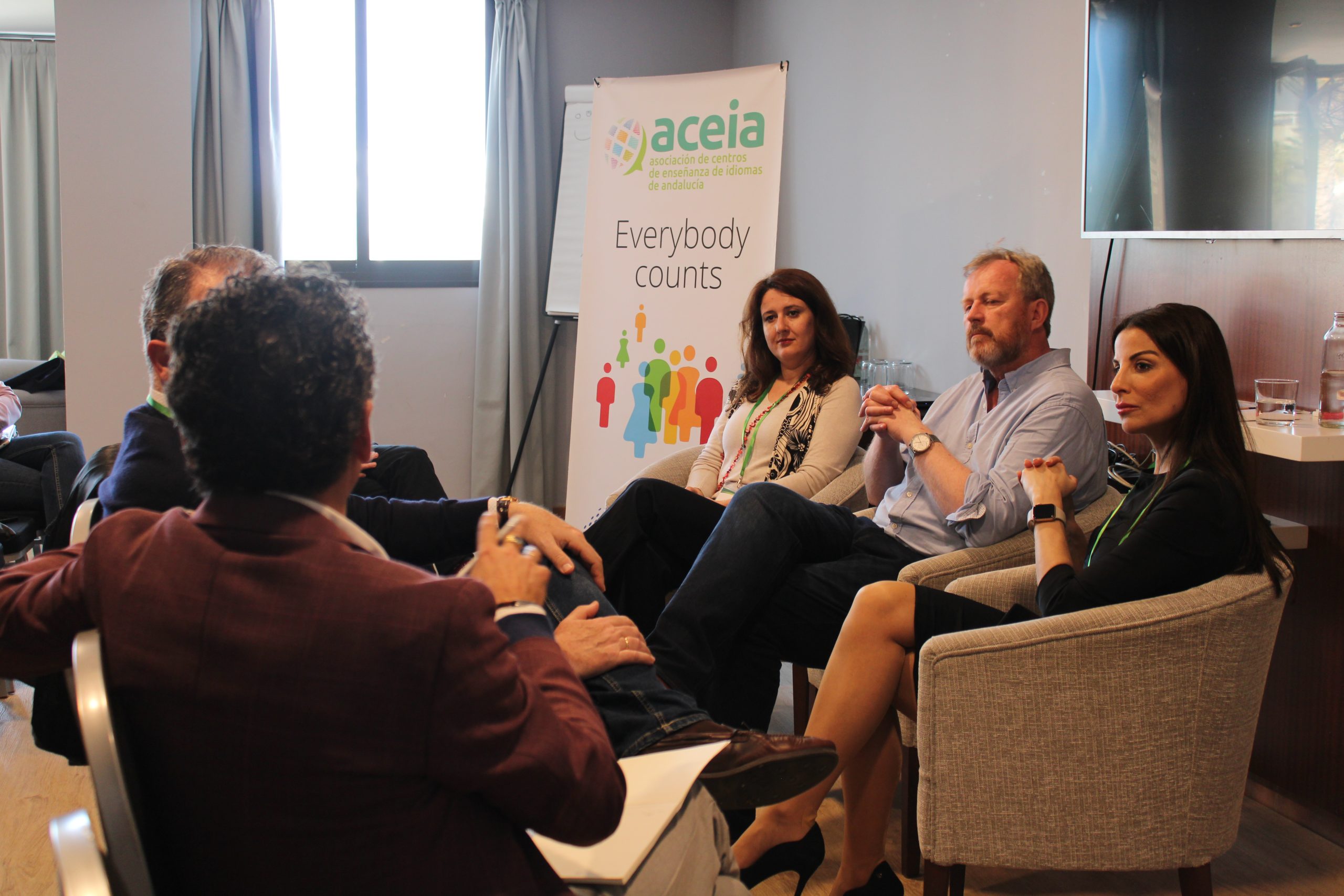 En la franja dedicada a Directors se han ofrecido dos workshops –“Providing Feedback for Empowerment”, con Lorraine Sastrías; y “Creating a healthy culture in business for growth and transformation”, con Steve Bannister-; y la Mesa redonda, baja el título “Retos para sobrevivir a una academia de Inglés”, dirigida por el presidente de ACEIA, Alan McDyre, y la vocal de Almería y coordinadora de la jornada, Anyes Segura; y Loto Gómez-Aleixandre Sandoval, censora de cuentas de ACEIA.
