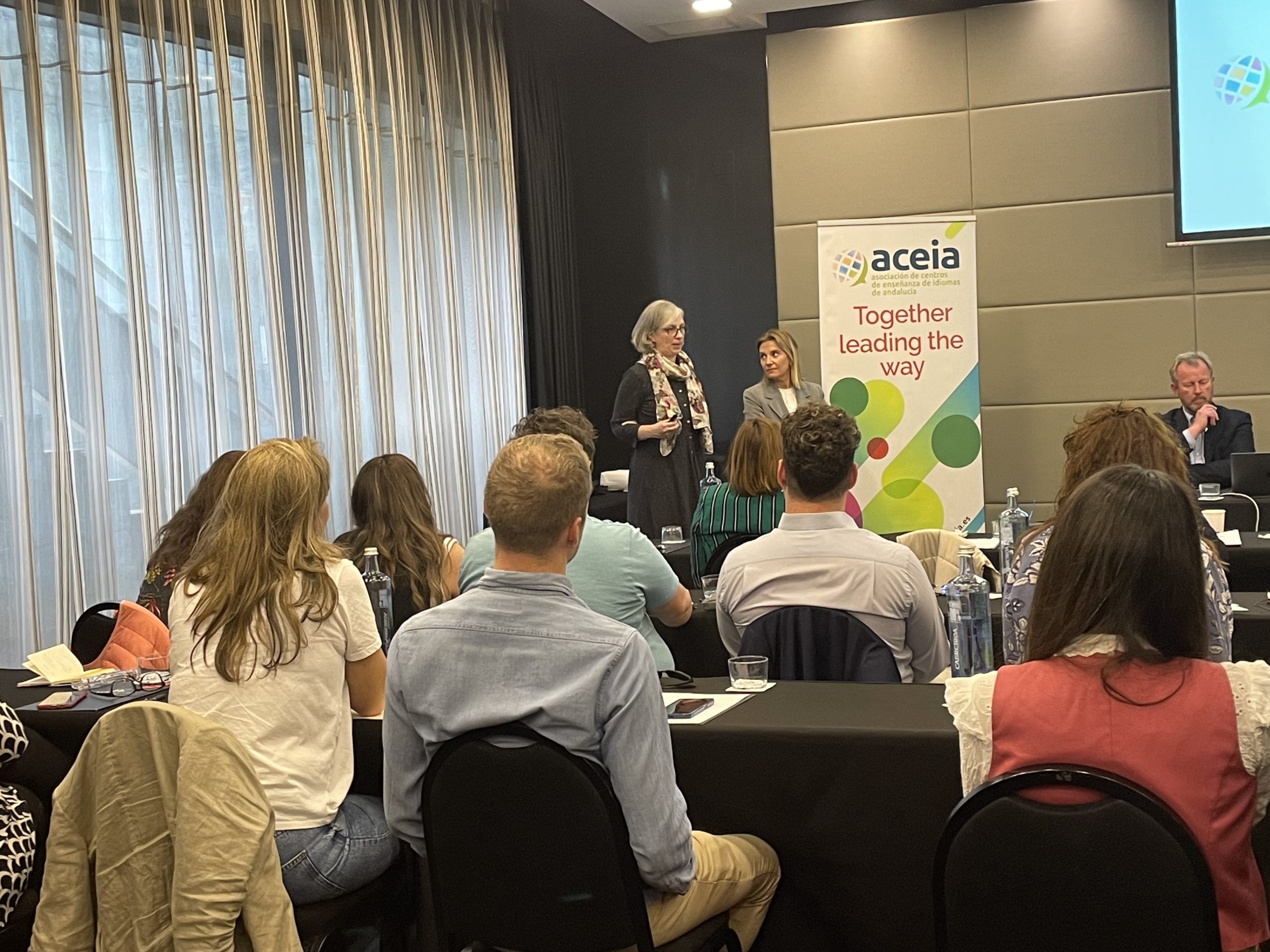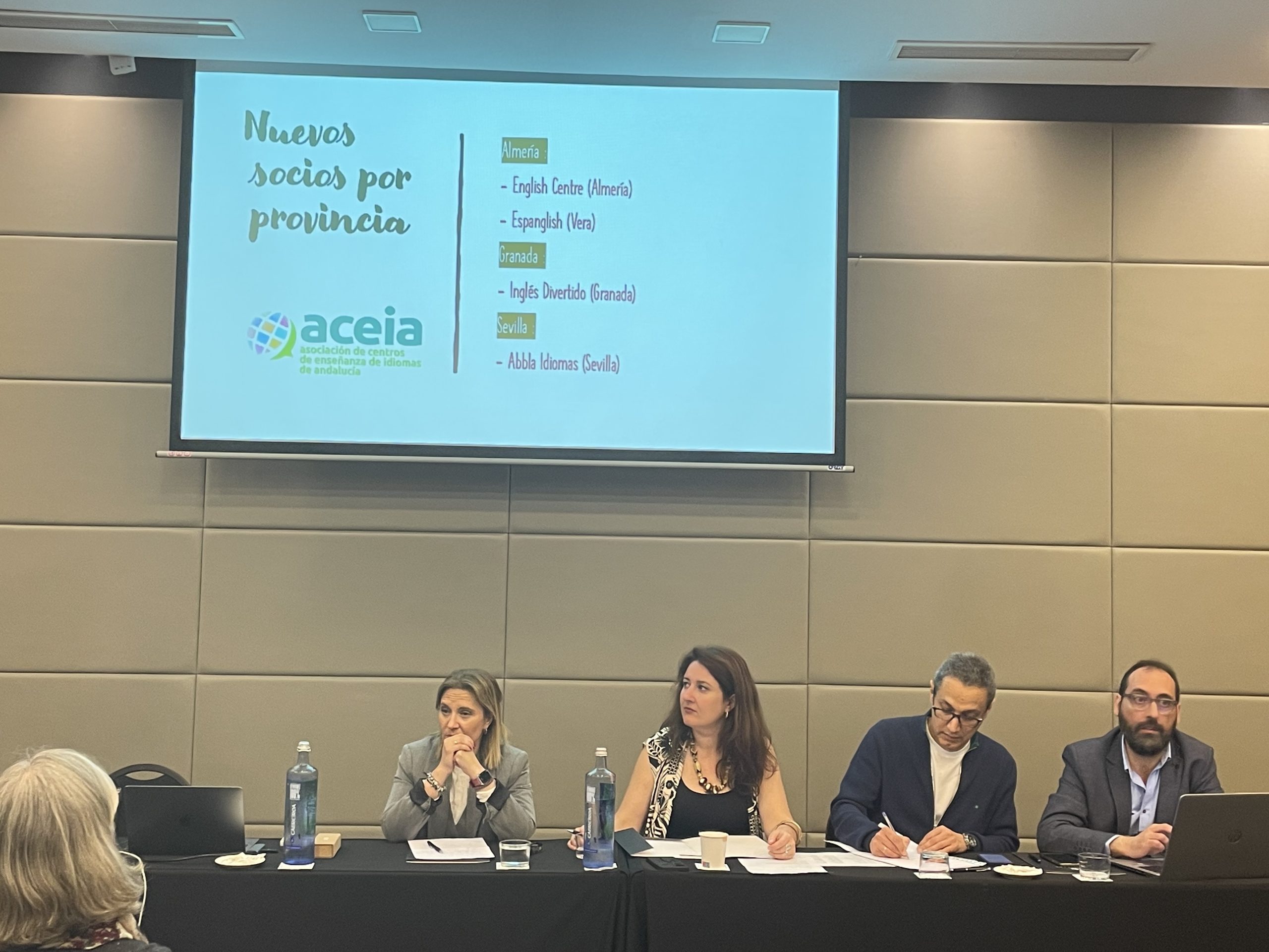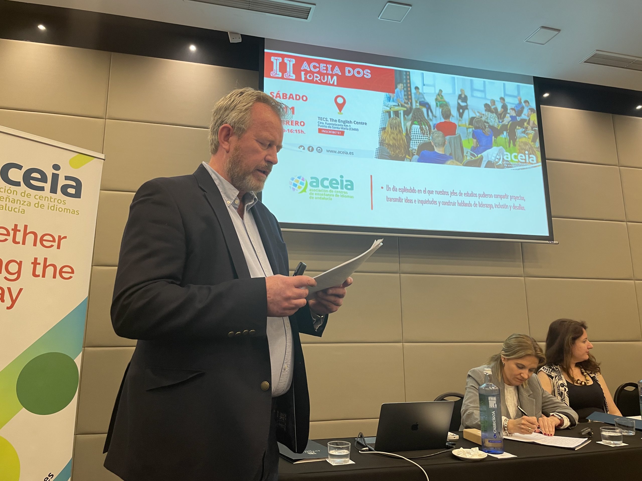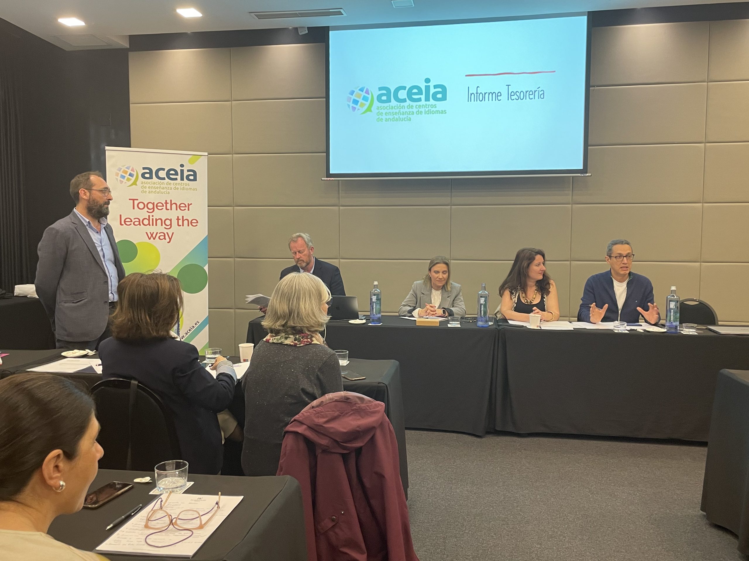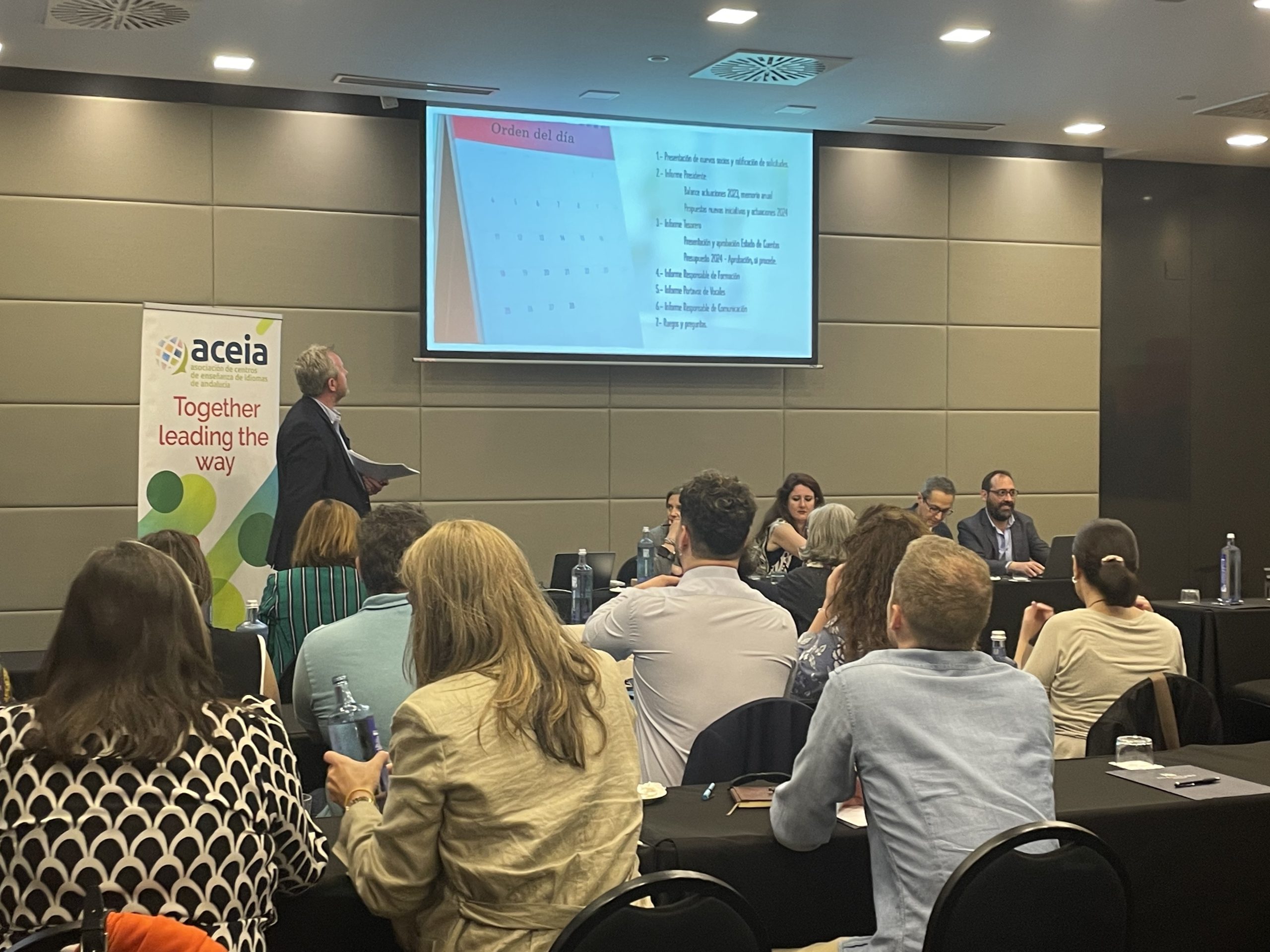 Al comienzo, el Presidente de ACEIA, Alan McDyre, -que ha dado la bienvenida a los nuevas escuelas asociadas- ha realizado un balance del año 2023, destacando los principales hitos desarrollados durante el ejercicio precedente, tanto en cuanto a visibilidad de nuestra asociación y del sector de idiomas, así como ha hecho balance de las oportunidades que la pertenencia a la Confederación de Empresarios de Andalucía (CEA) está ofreciendo, como la posibilidad de interlocurar directamente con la Junta de Andalucía de su mano, con resultados muy positivos para ACEIA.