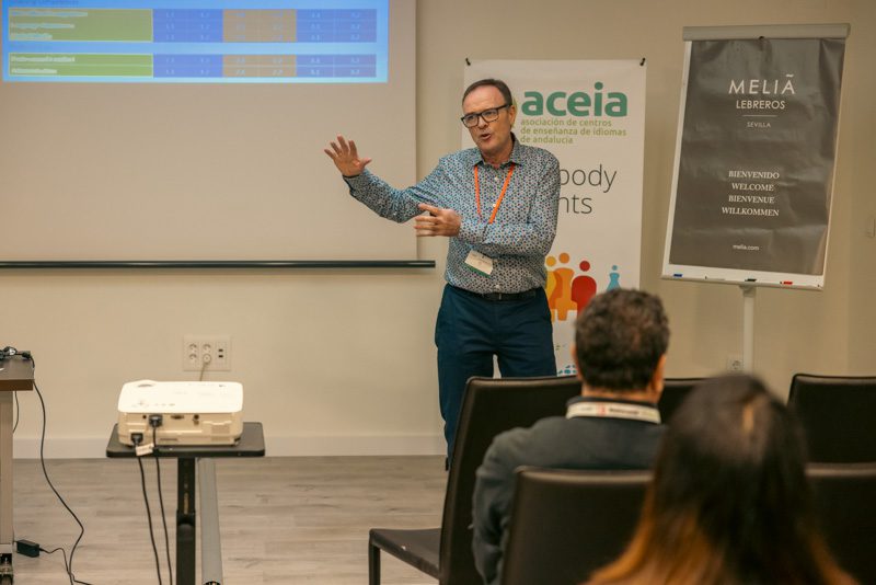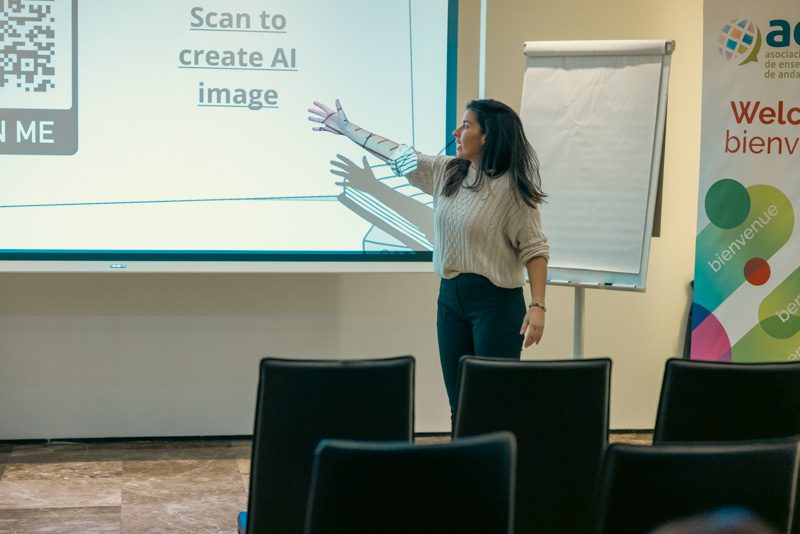 Además de la motivación y el uso de la inteligencia artificial, a lo largo de los 45 talleres (para todos los perfiles profesionales de las escuelas de idiomas: personal de administración DOS, docentes y personal de dirección) se trataron ampliamente otros temas, como el uso de nuevos recursos visuales en el aula, la importancia de la lectura y la música en la enseñanza de idiomas, así como las técnicas más atractivas para captar la atención del alumnado de todas las edades en el aula.