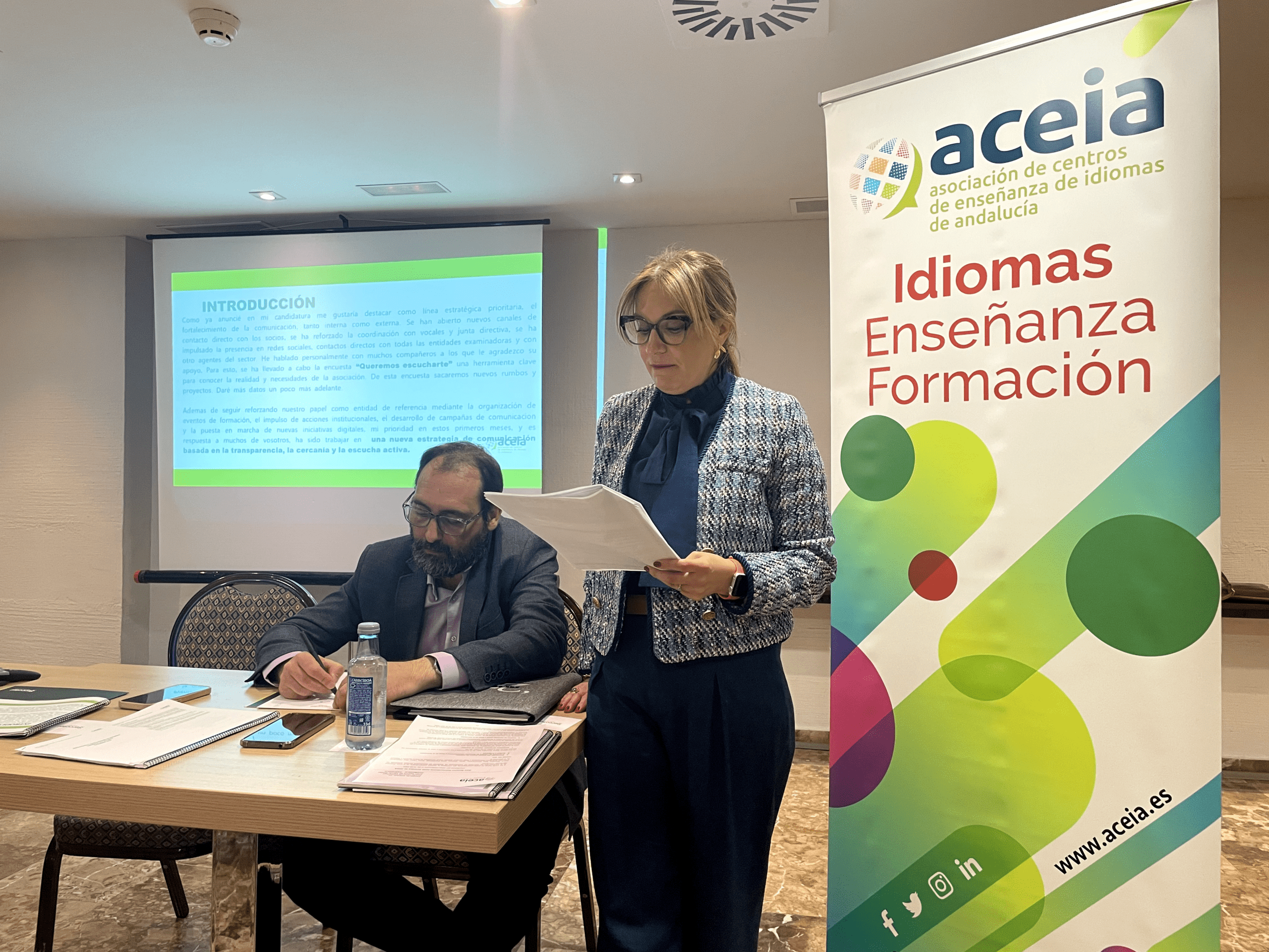 Este primer año de gestión, orientado a la excelencia y la cercanía, ha venido avalado por hitos que sitúan a ACEIA en la élite internacional. María compartió con emoción los reconocimientos que pertenecen a cada uno de los asociados: el Premio Nacional «Por el Bien del Sector» (FECEI TOP 2026) y el prestigioso galardón del British Council. Además, destacó la consolidación de alianzas estratégicas e institucionales de primer nivel con entidades como Trinity College London, la Universidad Loyola, el British Council y TESOL Spain, elevando estas relaciones a una colaboración estratégica que protege y dignifica el trabajo de todos nuestros centros. Estos logros no son solo trofeos, sino la prueba de que el modelo de «gestión con vocación de servicio» que defiende la Presidenta es el motor de nuestra red.